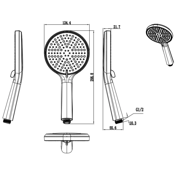 Душевая лейка Raglo R450.50.06 124,4 мм, 3 режима, черный матовый