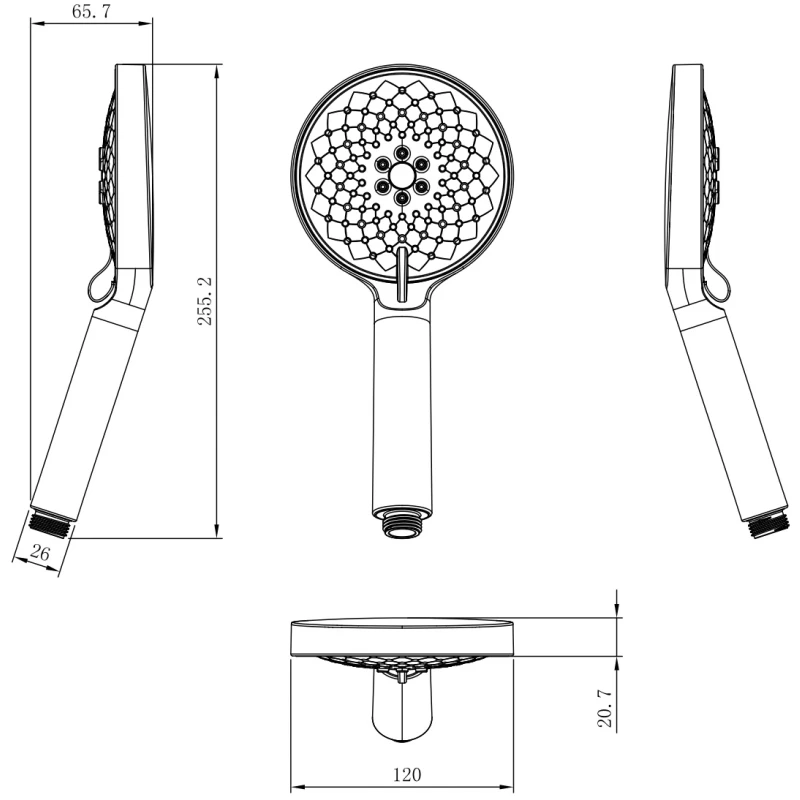Душевая лейка Wonzon & Woghand WW-981361-CR 120 мм, 3 режима, хром