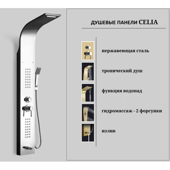 Душевая панель Ceruttispa Celia CT10403 220 мм, со смесителем, хром
