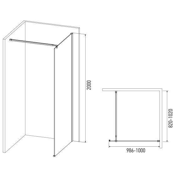Душевая перегородка Alex Baitler AB29100B1 100 см, профиль черный матовый, стекло прозрачное