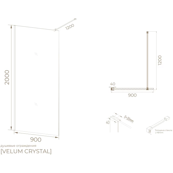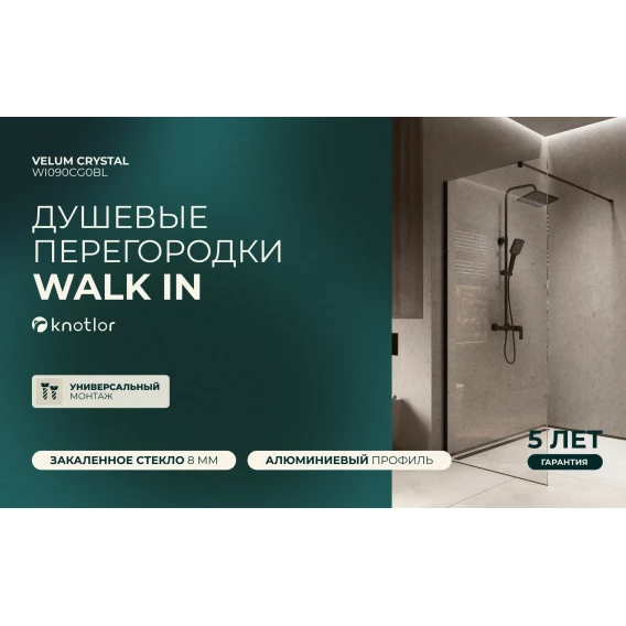 Душевая перегородка Knotlor Velum WI090CG0BL 90 см, профиль черный матовый, стекло прозрачное