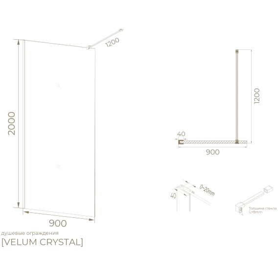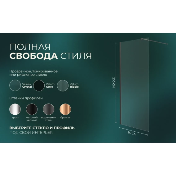 Душевая перегородка Knotlor Velum WI090CG0GM 90 см, профиль вороненая сталь, стекло прозрачное