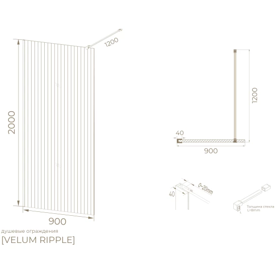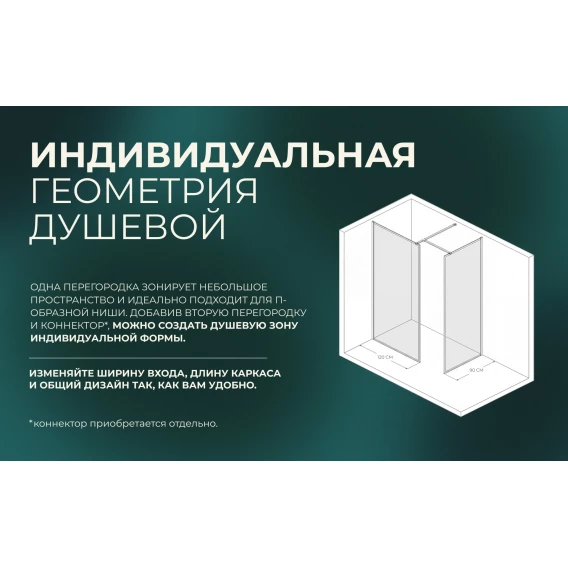 Душевая перегородка Knotlor Velum WI090CG1BL 90 см, профиль черный матовый, стекло рифленое