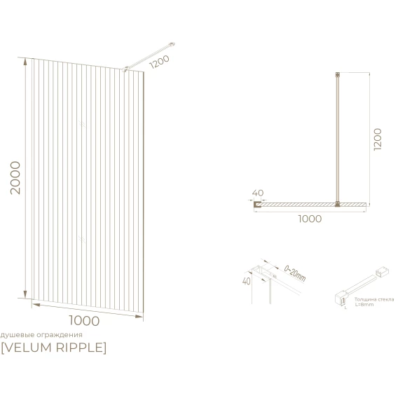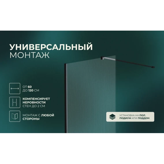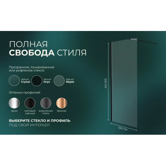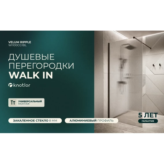 Душевая перегородка Knotlor Velum WI100CG1BL 100 см, профиль черный матовый, стекло рифленое