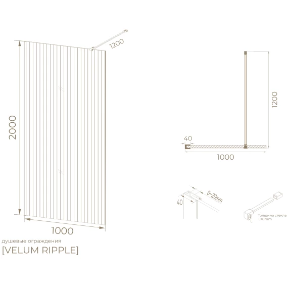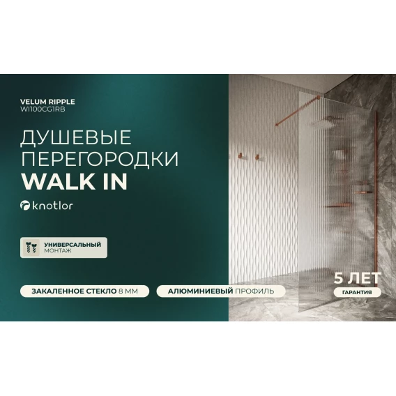 Душевая перегородка Knotlor Velum WI100CG1RB 100 см, профиль бронза матовая, стекло рифленое