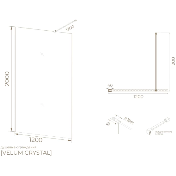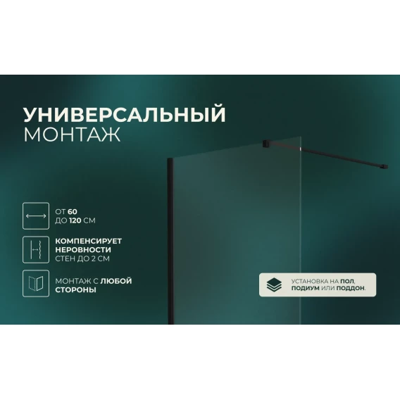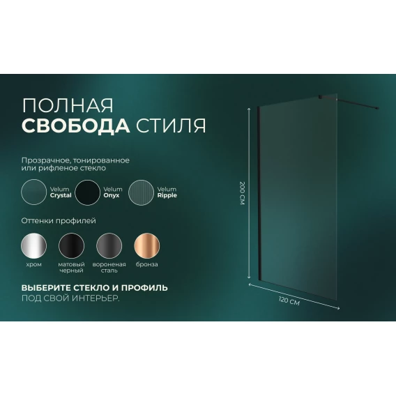 Душевая перегородка Knotlor Velum WI120CG0BL 120 см, профиль черный матовый, стекло прозрачное