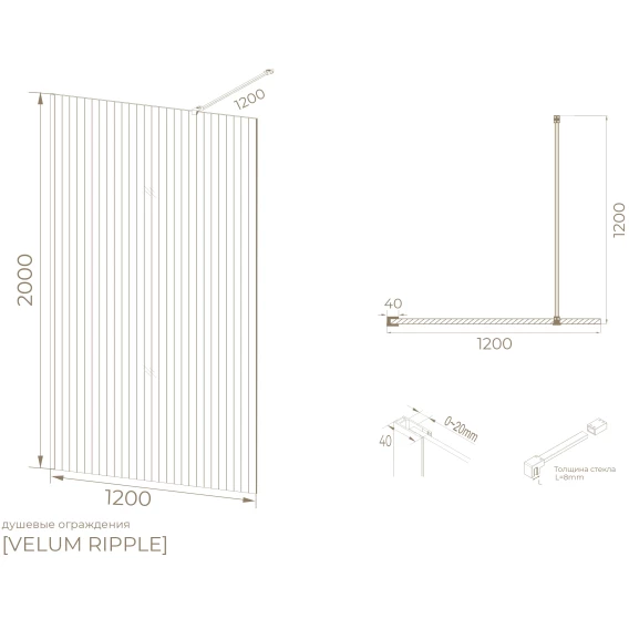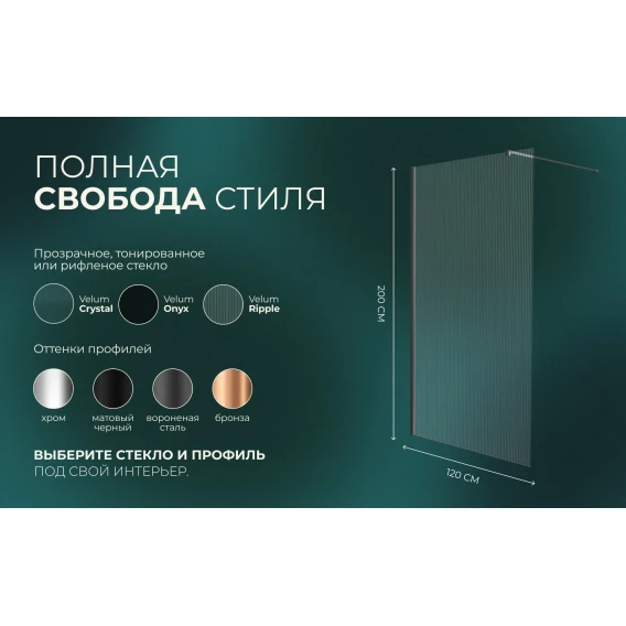 Душевая перегородка Knotlor Velum WI120CG1GM 120 см, профиль вороненая сталь, стекло рифленое
