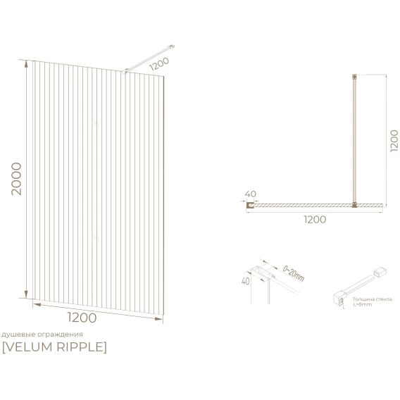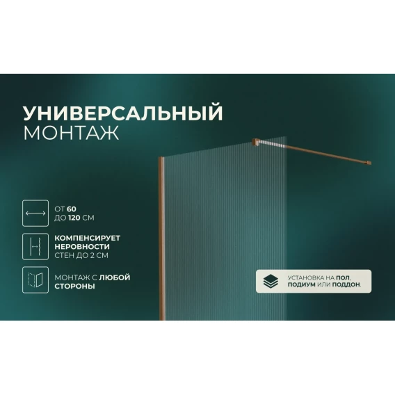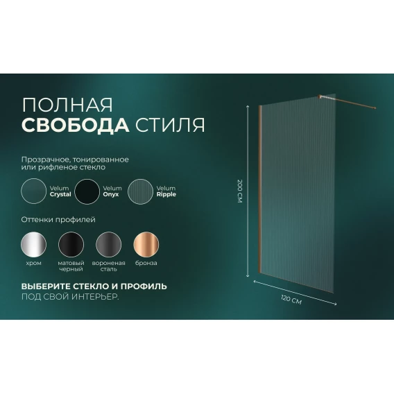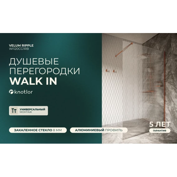 Душевая перегородка Knotlor Velum WI120CG1RB 1200 см, профиль бронза матовая, стекло рифленое