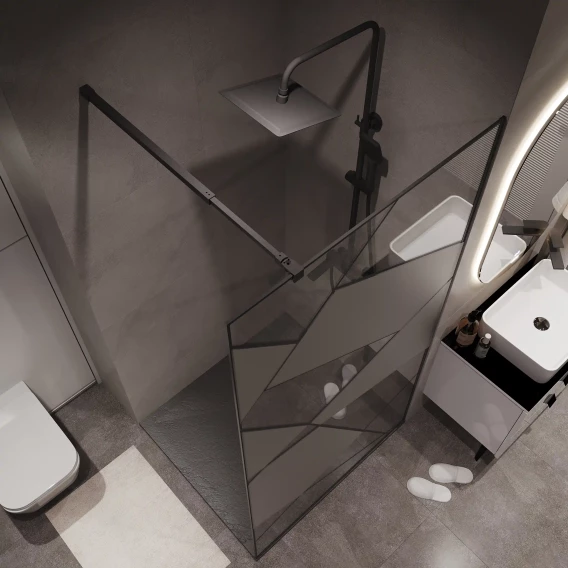 Душевая перегородка Niagara NG-680-10BLACK 100 см, профиль черный матовый, стекло прозрачное с рисунком