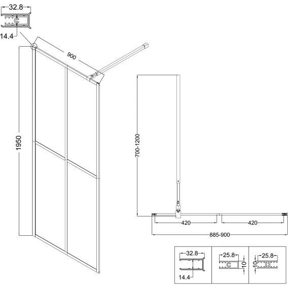 Душевая перегородка Niagara NG-686-90BLACK 90 см, профиль черный матовый, стекло прозрачное