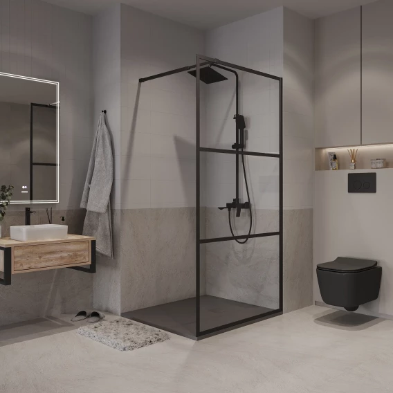 Душевая перегородка Niagara NG-688-10BLACK 100 см, профиль черный матовый, стекло прозрачное
