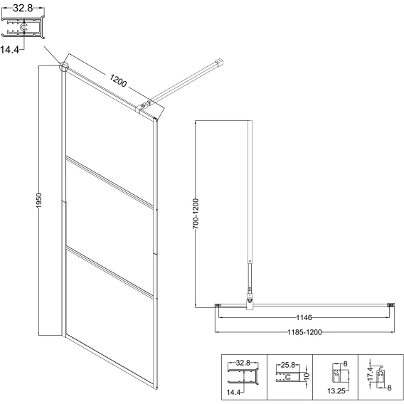 Душевая перегородка Niagara NG-688-12BLACK 120 см, профиль черный матовый, стекло прозрачное