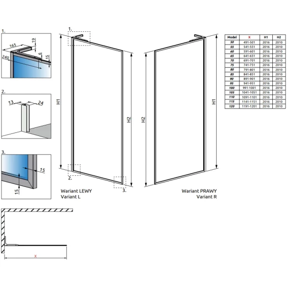 Душевая перегородка Radaway Modo F SL Black II 55 Right 10419055-54-01R профиль черный матовый, стекло прозрачное