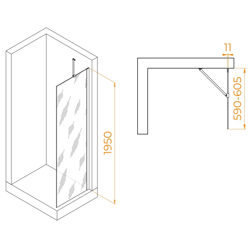 Неподвижная перегородка 70 см Cezares LIBERTA-L-1-TB-70-C-NERO прозрачное