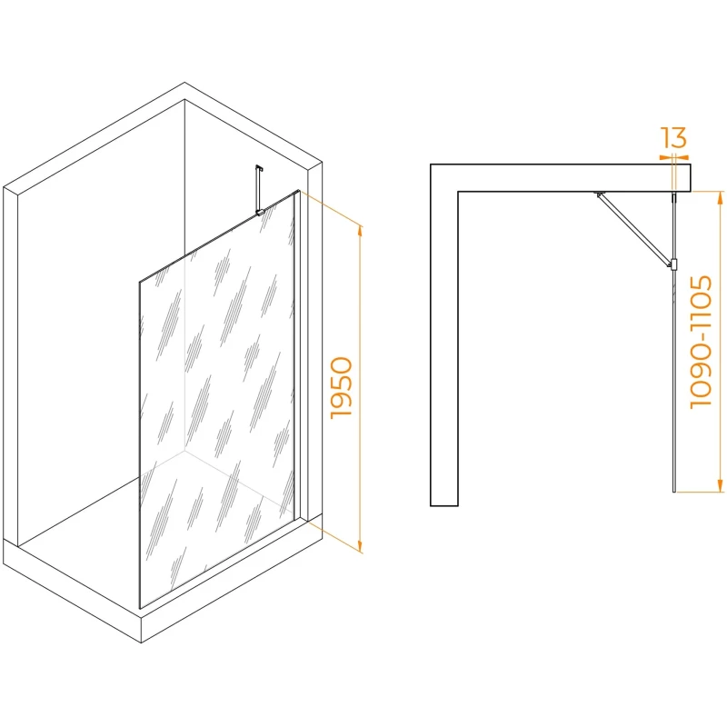 Неподвижная перегородка 80 см Cezares LIBERTA-L-1-TB-80-C-NERO прозрачное