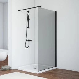Душевая перегородка Vegas Glass EAF NOVO h2000 76 02M 07 76 см, профиль черный матовый, стекло графитовое