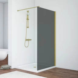 Душевая перегородка Vegas Glass EAF NOVO h2000 76 03 07 76 см, профиль золотой матовый, стекло графитовое