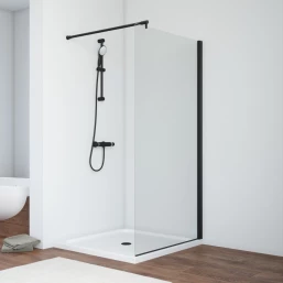 Душевая перегородка Vegas Glass EAF NOVO h2000 96 02M 02 96 см, профиль черный матовый, стекло шиншилла