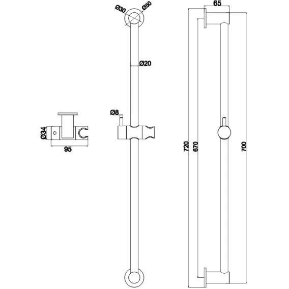 Душевая штанга Whitecross Y Y1010GM  72 см, оружейная сталь