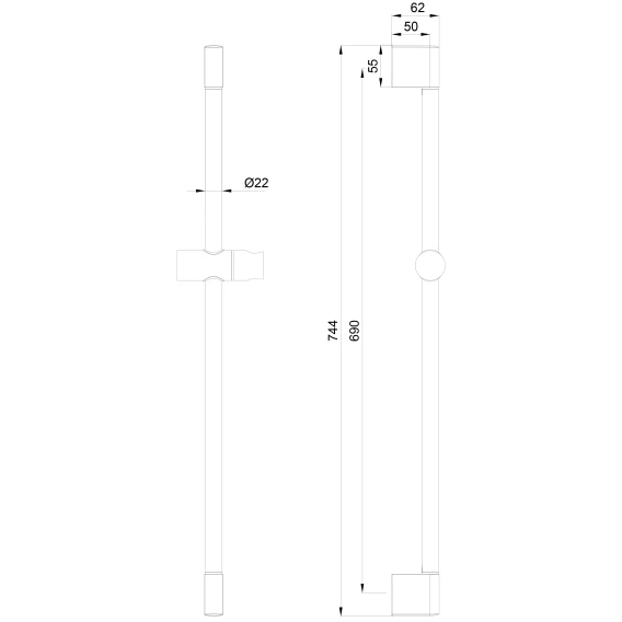 Душевая штанга Wonzon & Woghand WW-SL03-MW 74,4 см, белый матовый