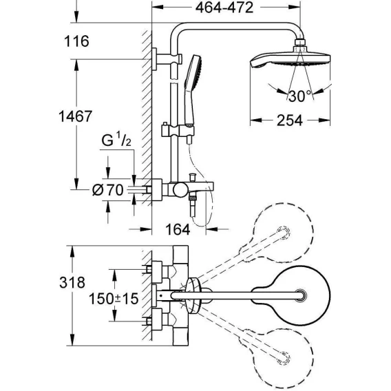 • GROHE One-click showering Выбор режима струи нажатием кнопки