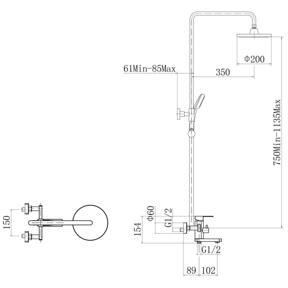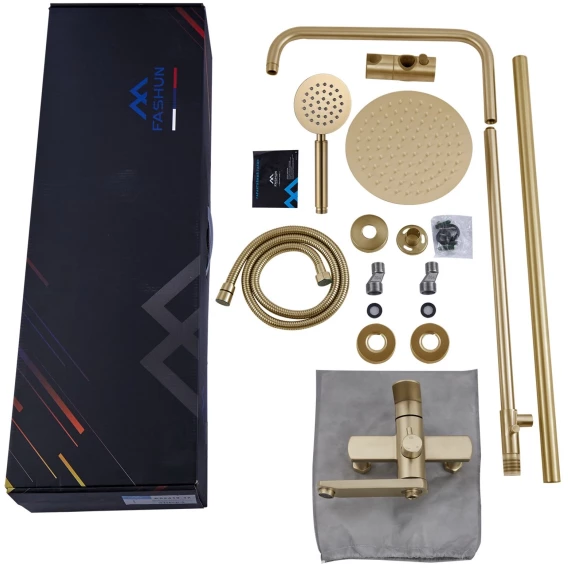 Аэратор, Металлическая розетка, Эксцентрики, Душевой шланг, Душевая лейка, Держатель для душевой лейки, Верхний душ, Смеситель, Кронштейн, Штанга душевая
