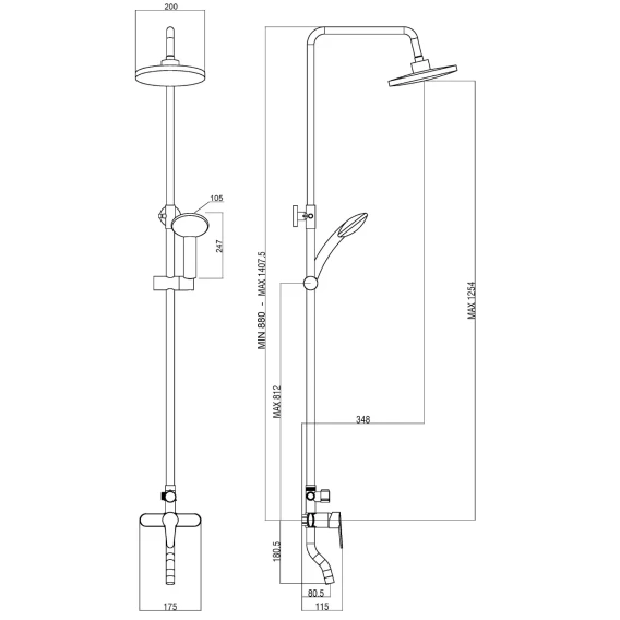 Аэратор, Металлическая розетка, Эксцентрики, Душевой шланг, Душевая лейка, Держатель для душевой лейки, Верхний душ, Смеситель, Кронштейн, Штанга душевая