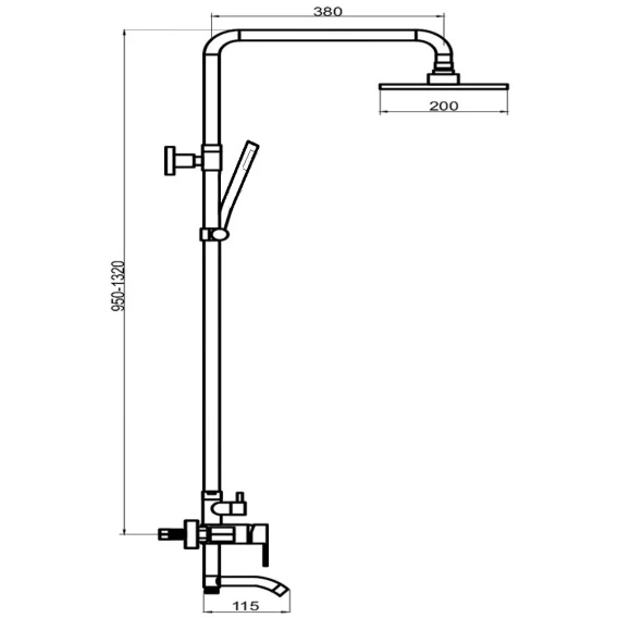 Душевая система 200 мм РМС SUS124-009DK-1
