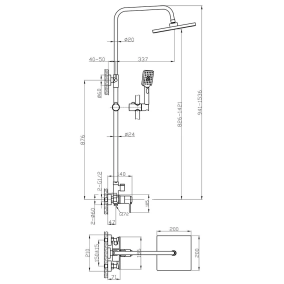 Душевая система 200 мм Rossinka RS50 RS50-45