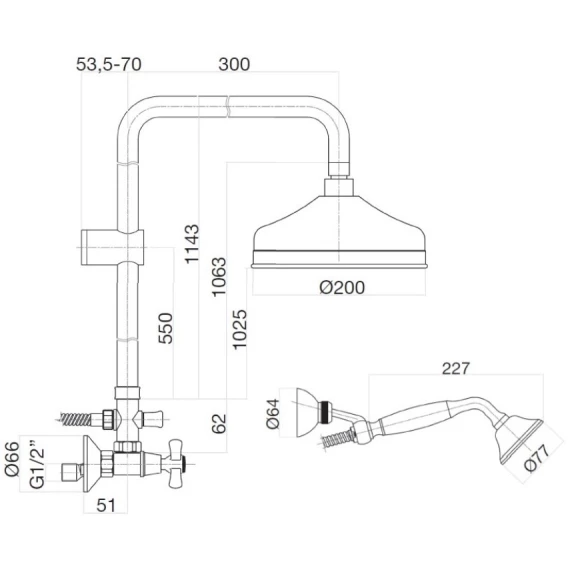 Металлическая розетка, Эксцентрики, Душевой шланг, Душевая лейка, Держатель для душевой лейки, Верхний душ, Смеситель, Кронштейн, Штанга душевая