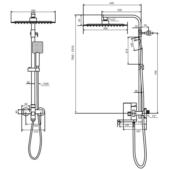 Душевая система 200 мм WesnaArt Kubus KUB13-314