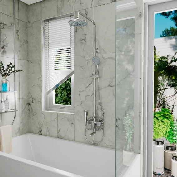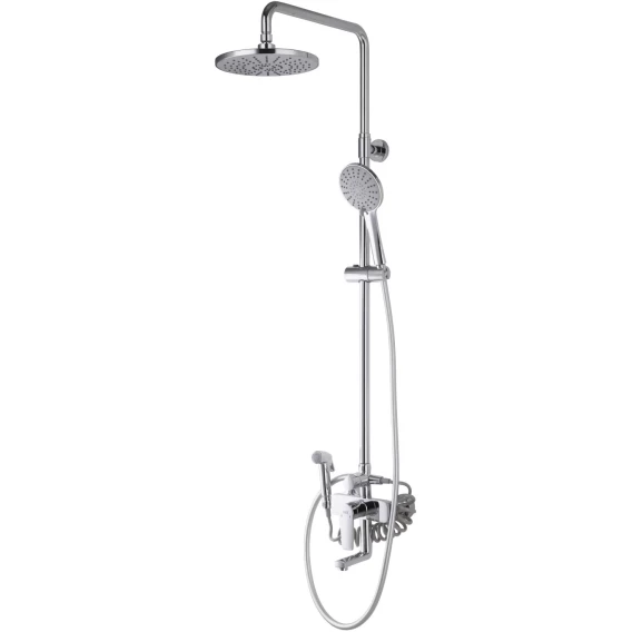 Аэратор, Металлическая розетка, Эксцентрики, Душевой шланг, Душевая лейка, Держатель для душевой лейки, Верхний душ, Смеситель, Кронштейн, Штанга душевая