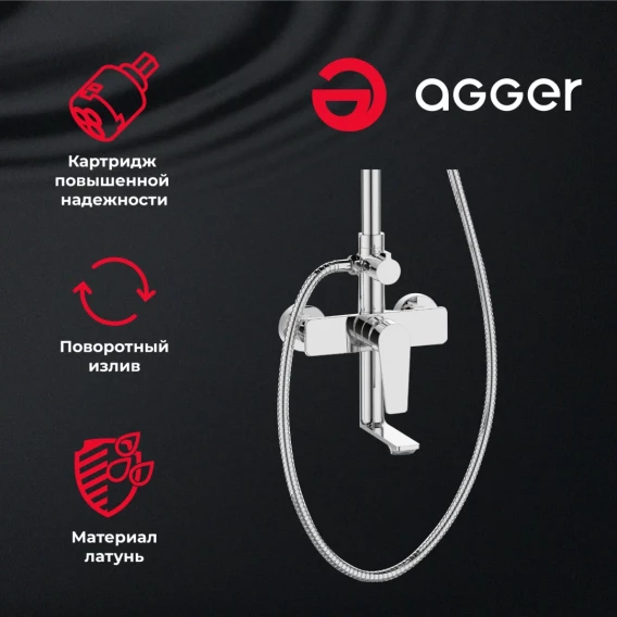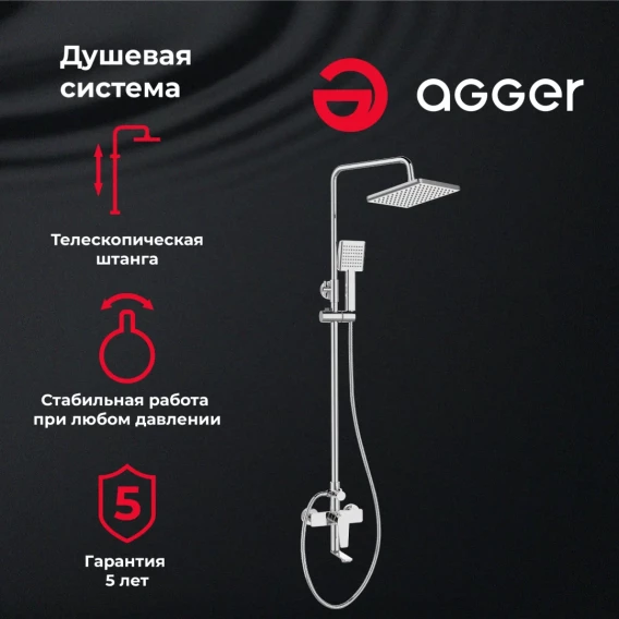 Аэратор, Металлическая розетка, Эксцентрики, Душевой шланг, Душевая лейка, Держатель для душевой лейки, Верхний душ, Смеситель, Кронштейн, Штанга душевая