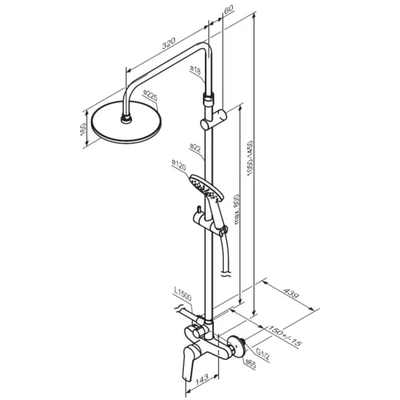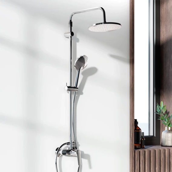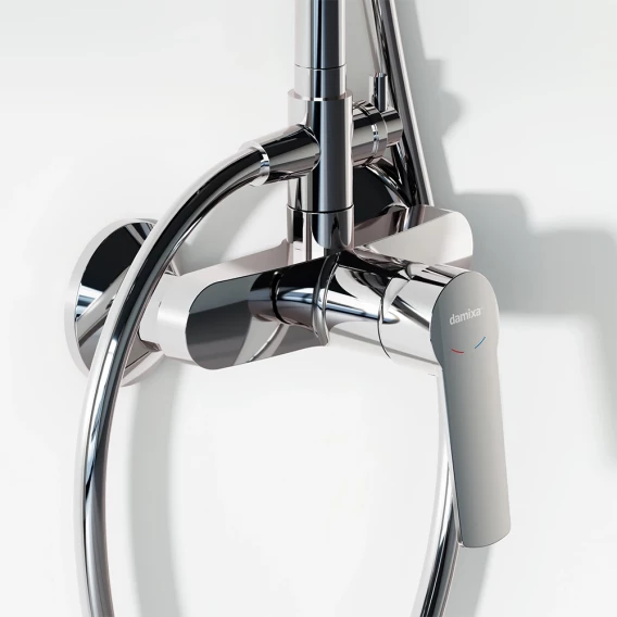 Металлическая розетка, Эксцентрики, Душевой шланг, Душевая лейка, Держатель для душевой лейки, Верхний душ, Смеситель, Кронштейн, Штанга душевая