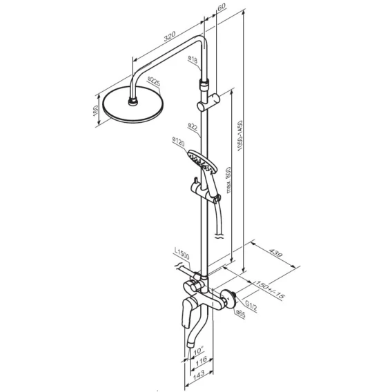 Аэратор, Металлическая розетка, Эксцентрики, Душевой шланг, Душевая лейка, Держатель для душевой лейки, Верхний душ, Смеситель, Кронштейн, Штанга душевая