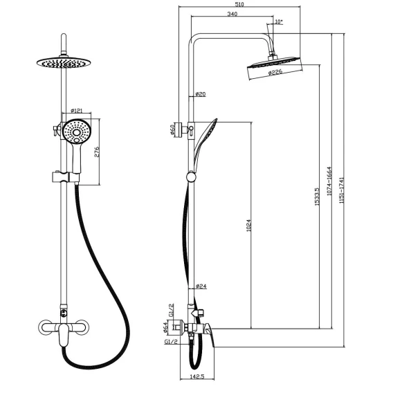 Душевая система 226 мм Rossinka RS45 RS45-45