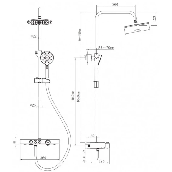 Душевая система 228 мм Berges Morans 075002