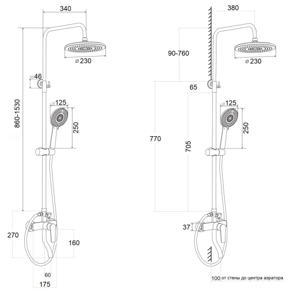 Смеситель для ванны D-Lin D130351 с душевым гарнитуром, хром