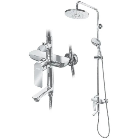 Аэратор, Металлическая розетка, Эксцентрики, Душевой шланг, Душевая лейка, Держатель для душевой лейки, Верхний душ, Смеситель, Кронштейн, Штанга душевая