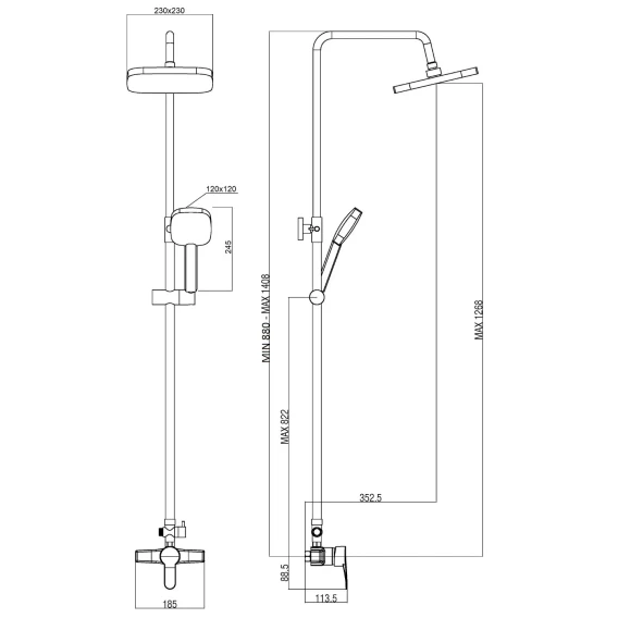 Металлическая розетка, Эксцентрики, Душевой шланг, Душевая лейка, Держатель для душевой лейки, Верхний душ, Смеситель, Кронштейн, Штанга душевая