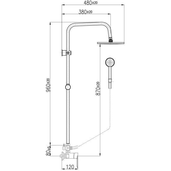 Металлическая розетка, Эксцентрики, Душевой шланг, Душевая лейка, Держатель для душевой лейки, Верхний душ, Смеситель, Кронштейн, Штанга душевая