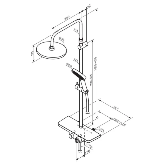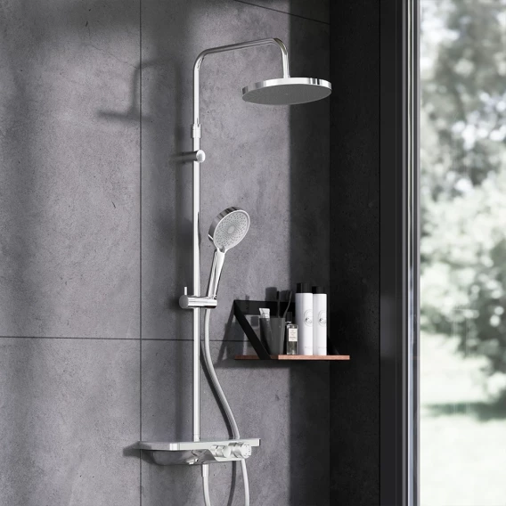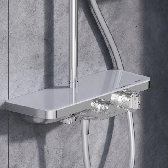 Аэратор, Эксцентрики, Душевой шланг, Душевая лейка, Держатель для душевой лейки, Полочка, Верхний душ, Кронштейн, Штанга душевая, Термостат