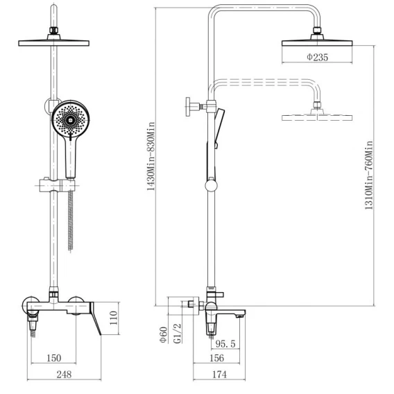 Аэратор, Душевой шланг, Душевая лейка, Держатель для душевой лейки, Верхний душ, Смеситель, Кронштейн, Штанга душевая