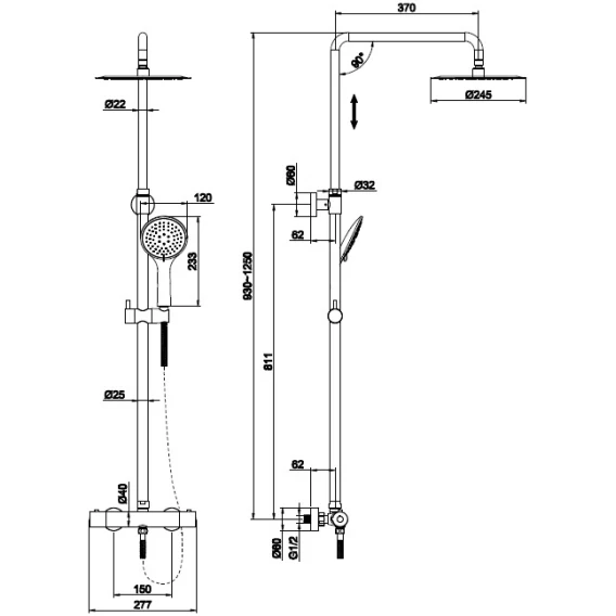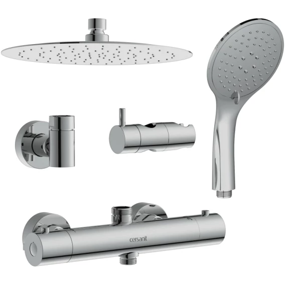 Металлическая розетка, Эксцентрики, Душевой шланг, Душевая лейка, Держатель для душевой лейки, Верхний душ, Кронштейн, Штанга душевая, Термостат