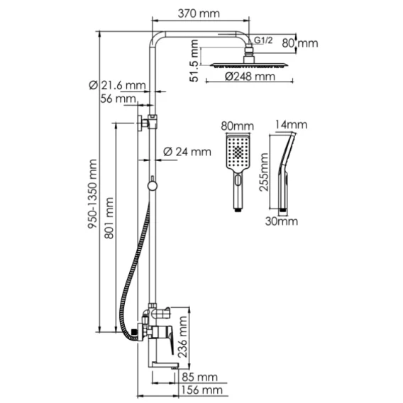 Душевая система 248 мм WasserKRAFT Aisch A155.259.201.BG