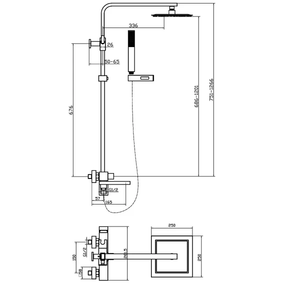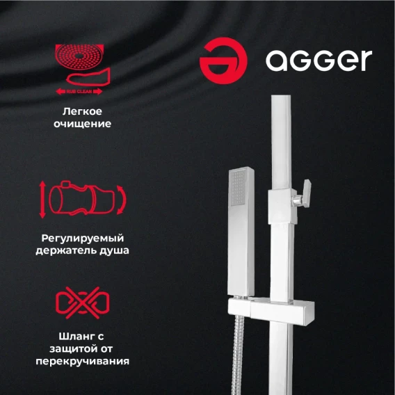 Аэратор, Металлическая розетка, Эксцентрики, Душевой шланг, Душевая лейка, Держатель для душевой лейки, Верхний душ, Смеситель, Кронштейн, Штанга душевая