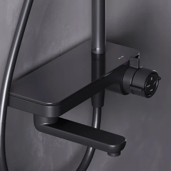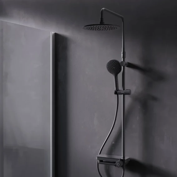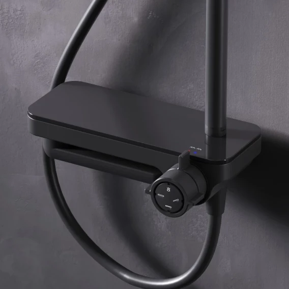 Аэратор, Металлическая розетка, Эксцентрики, Душевой шланг, Душевая лейка, Держатель для душевой лейки, Полочка, Верхний душ, Смеситель, Кронштейн, Штанга душевая