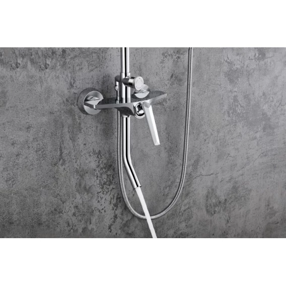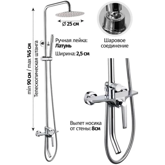 Аэратор, Металлическая розетка, Эксцентрики, Душевой шланг, Душевая лейка, Держатель для душевой лейки, Верхний душ, Смеситель, Кронштейн, Штанга душевая