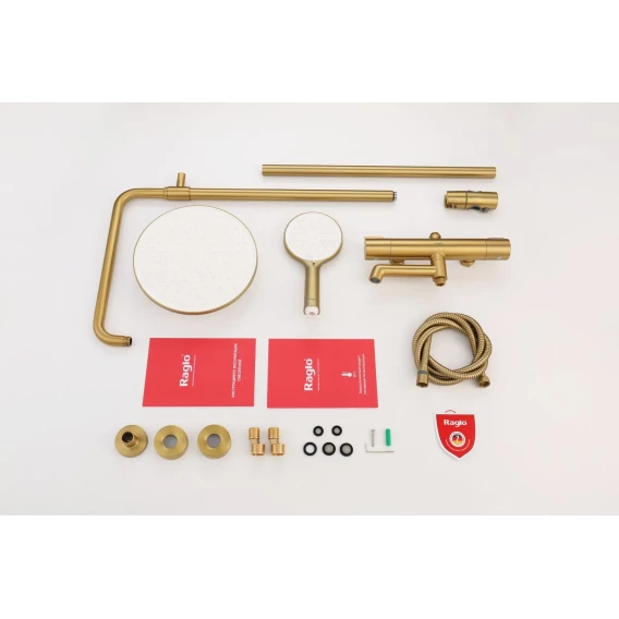 Аэратор, Металлическая розетка, Эксцентрики, Душевой шланг, Душевая лейка, Держатель для душевой лейки, Верхний душ, Кронштейн, Штанга душевая, Термостат