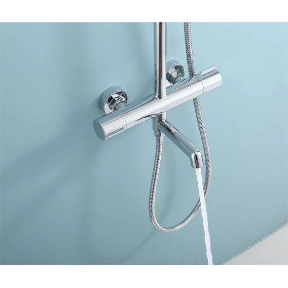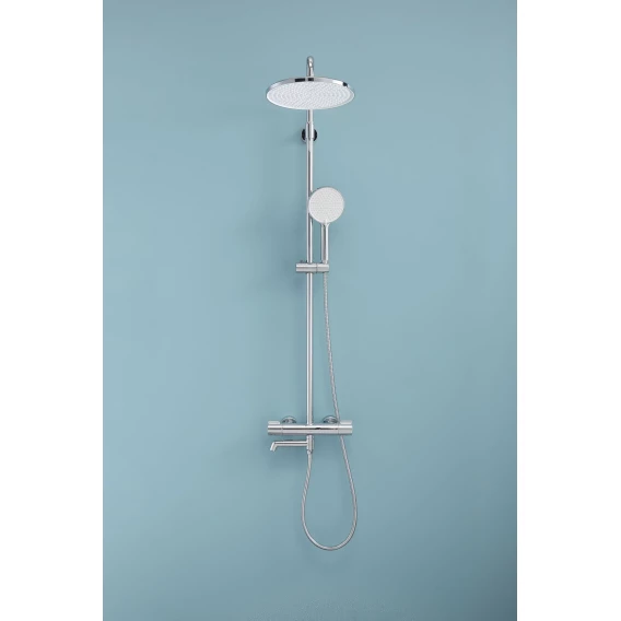Аэратор, Металлическая розетка, Эксцентрики, Душевой шланг, Душевая лейка, Держатель для душевой лейки, Верхний душ, Кронштейн, Штанга душевая, Термостат